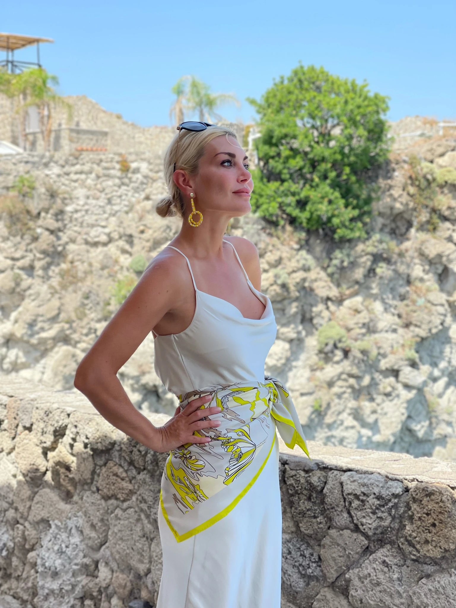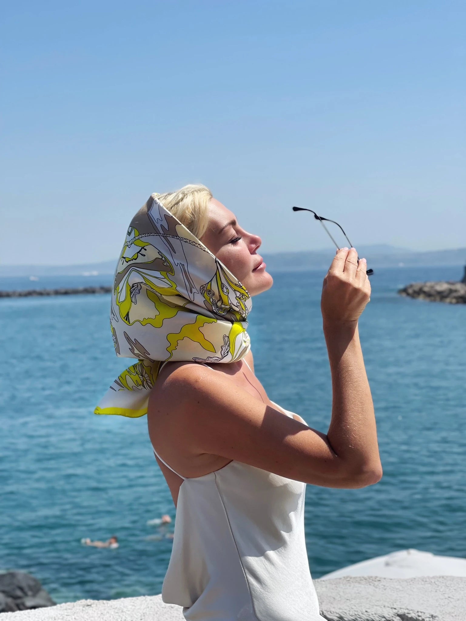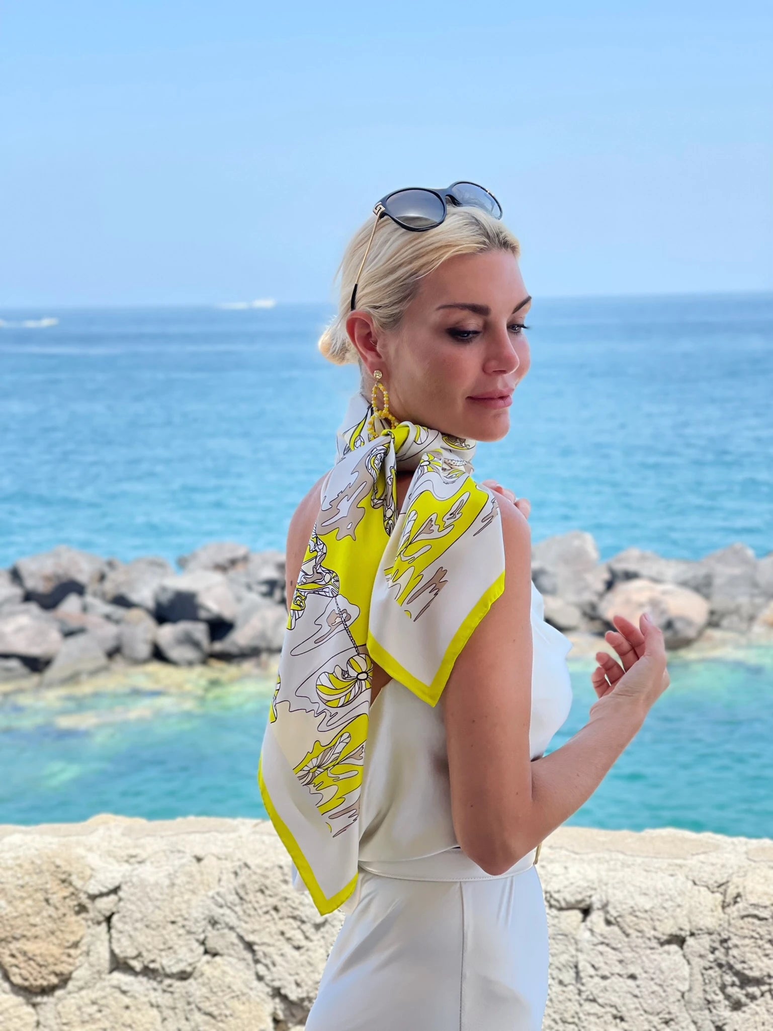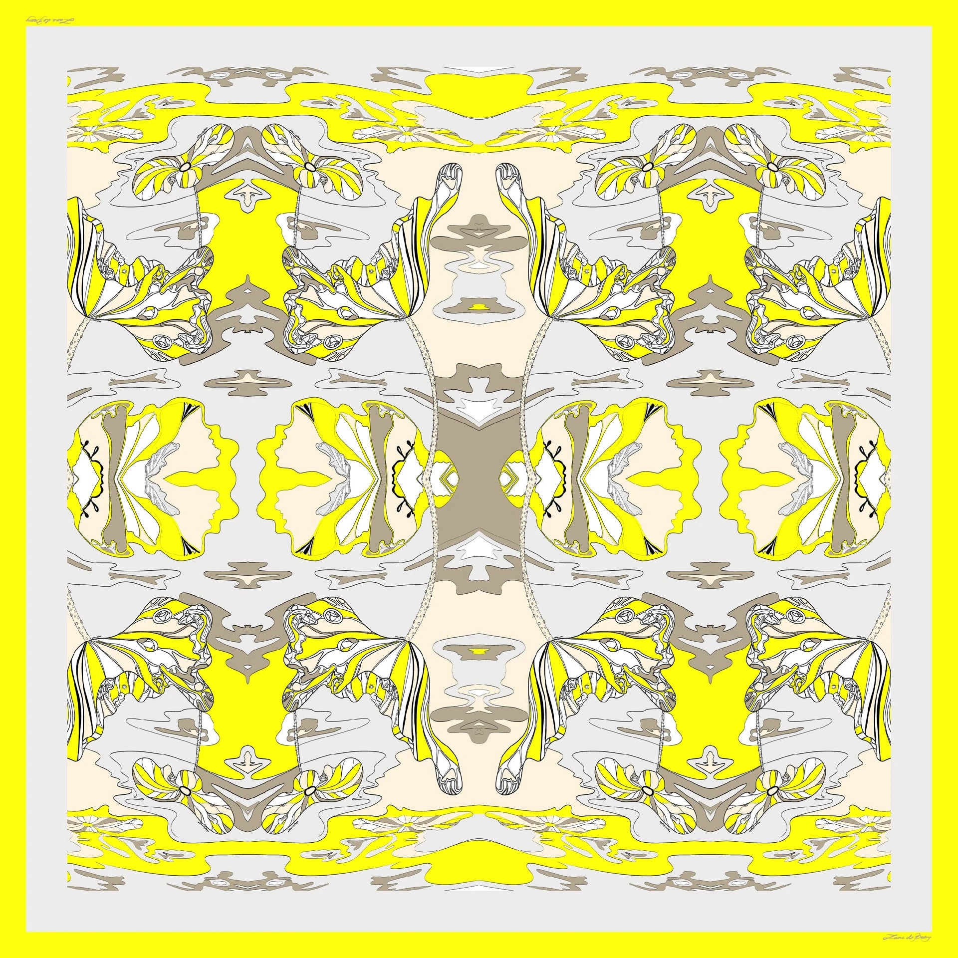 LANA DE BEERG Seiden-Carré als Inbegriff der zeitlosen Eleganz, vielseitig verwendbar, passend zu jeder Jahreszeit. Einzigartig leuchtender Künstlerdruck "melting flowers" mit LANA DE BEERG Logo. Nicht nur, aber auch ideal kombinierbar zu LANA DE BEERG Bluse LIVIA "melting flowers".
