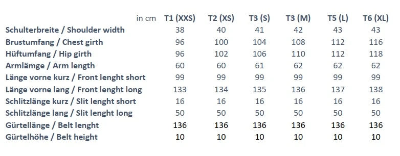 Das Model trägt T2 (XS), bei 174cm Körpergröße. Bitte beachten Sie die Maßtabelle und finden so die perfekte Größe.
